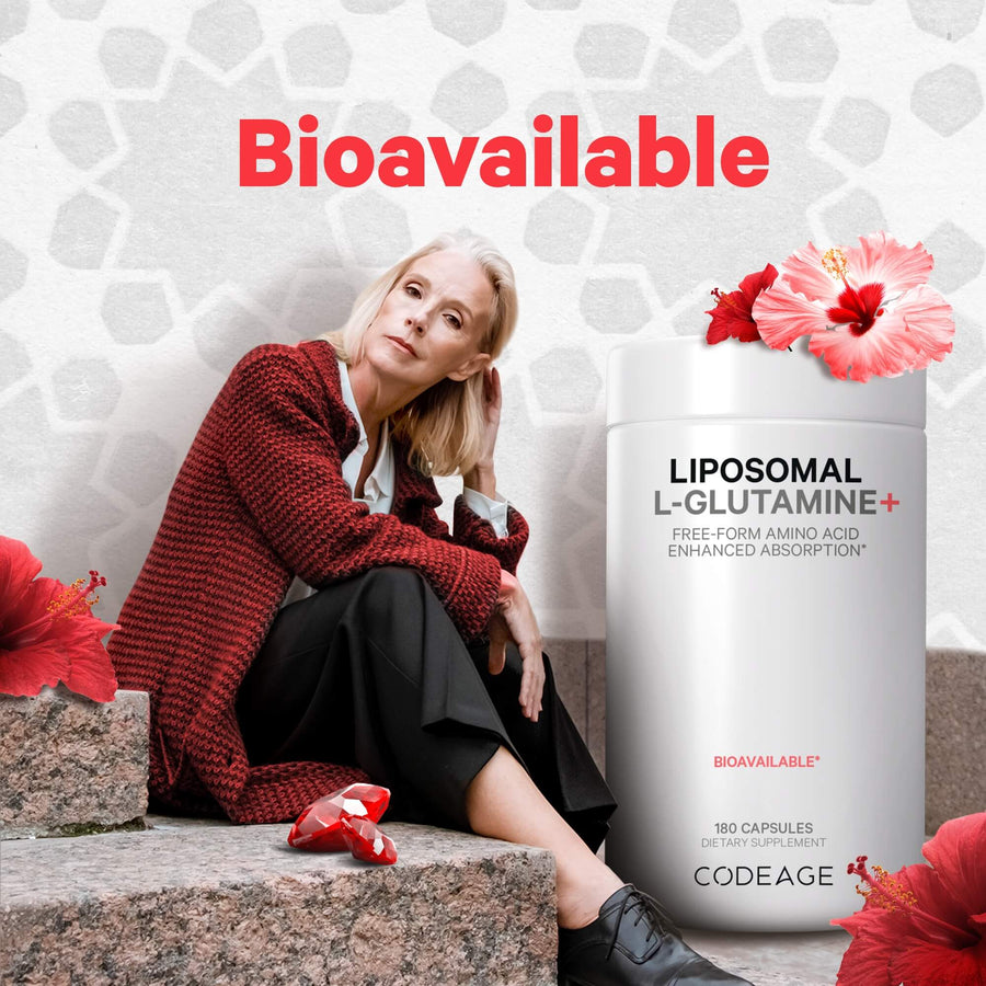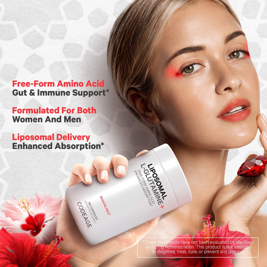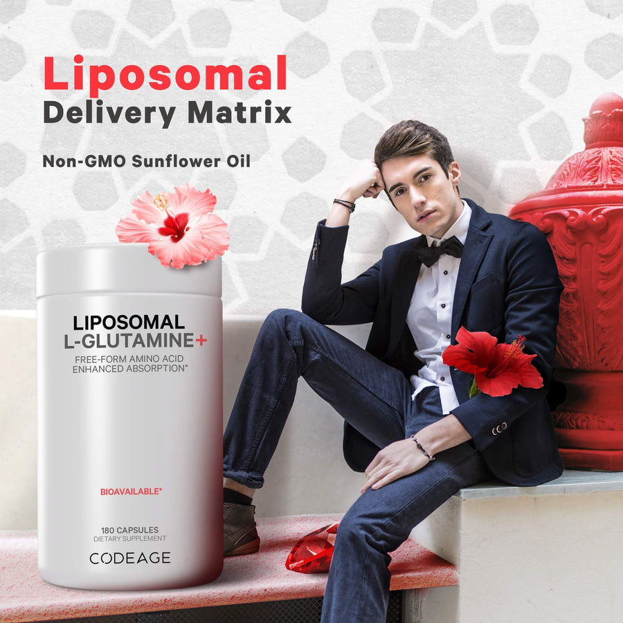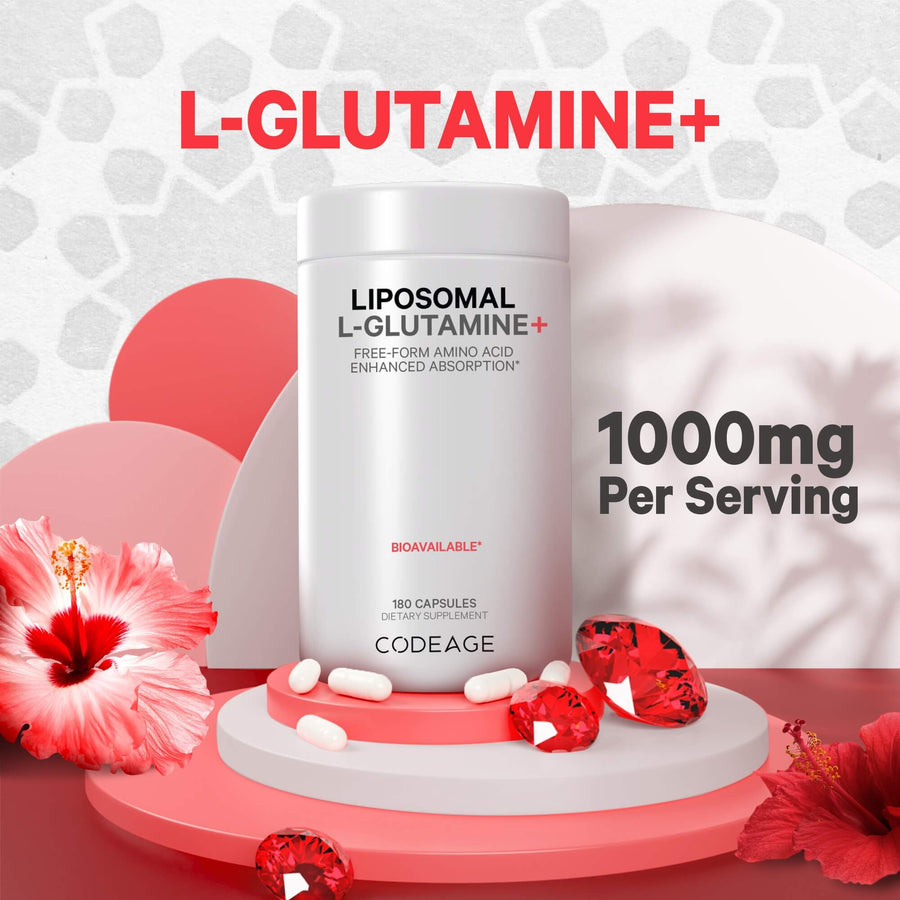 - Codeage Liposomal L-Glutamine capsule supplement provides high-quality, free-form L-Glutamine, an amino acid that can be used in various wellness routines.