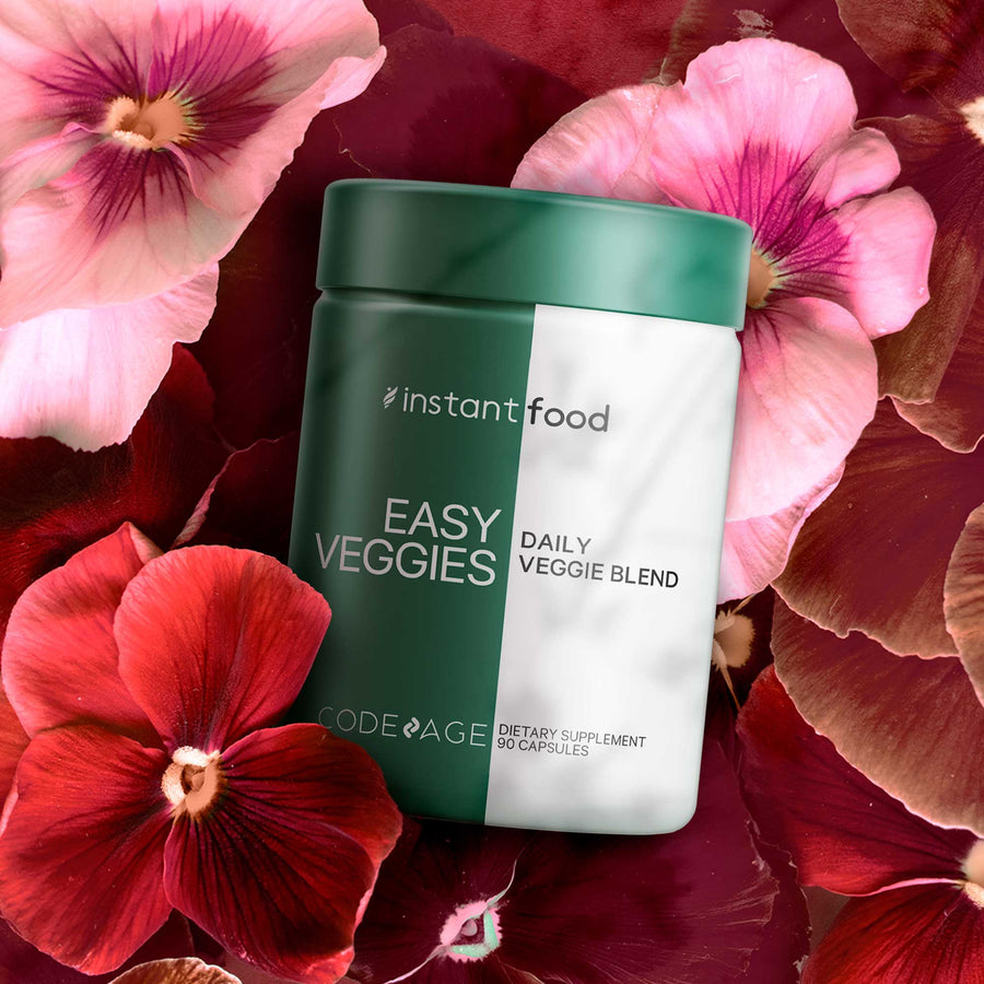 Codeage Instantfood Easy Veggies & Fast Fruits combine the power of over 30 whole fruit and vegetable powders in one convenient capsule bundle, delivering a unique set of vitamins, minerals, and phytonutrients.