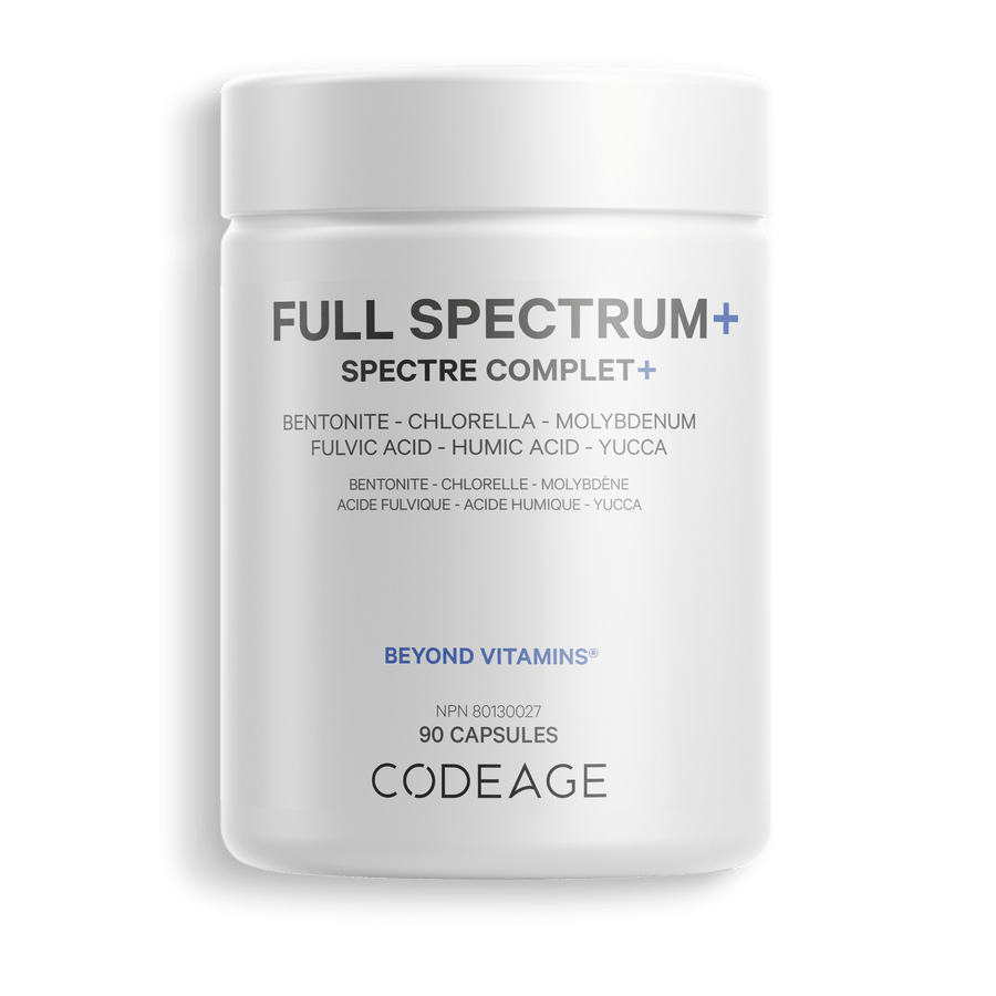 - Codeage Full Spectrum+ features molybdenum glycinate chelate, activated charcoal, and bentonite clay, ingredients known for their role in general wellness.