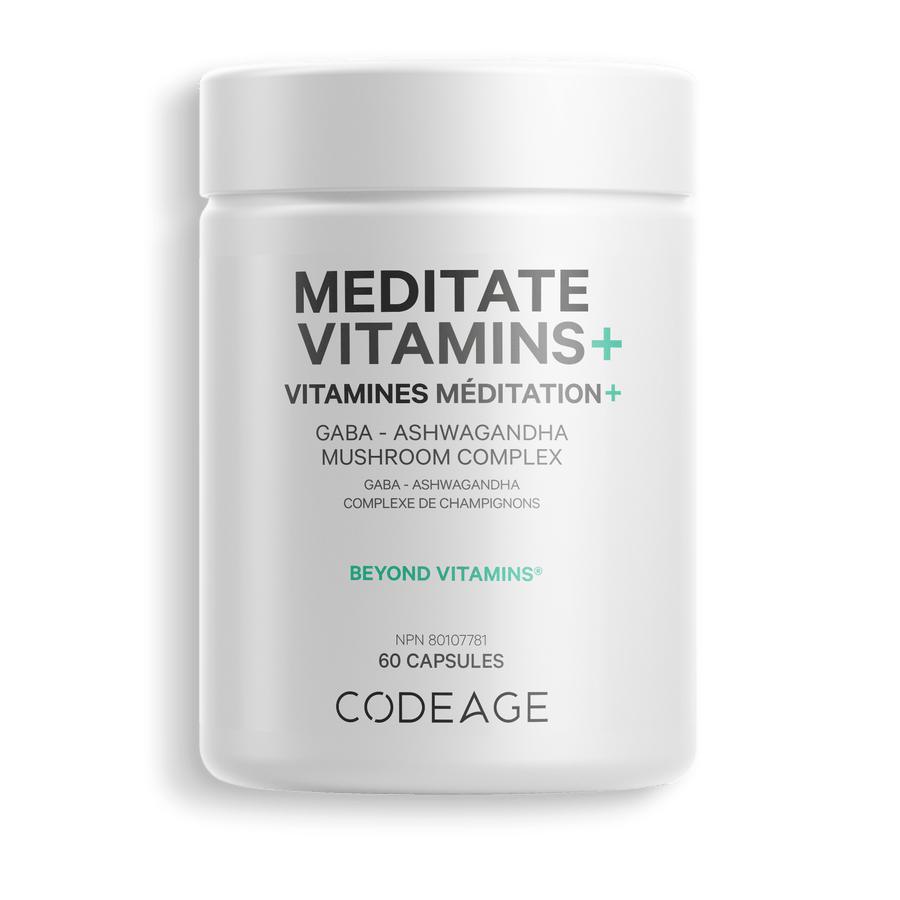 - Meditate Vitamins+ ofrece Ashwagandha (Withania somnifera), una hierba popular en la medicina tradicional india, así como una poderosa combinación de hongos melena de león, Cordyceps y Reishi para ayudar a mantener un sistema inmunológico saludable como parte de estas vitaminas para la fórmula del nerviosismo.*