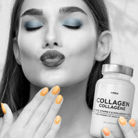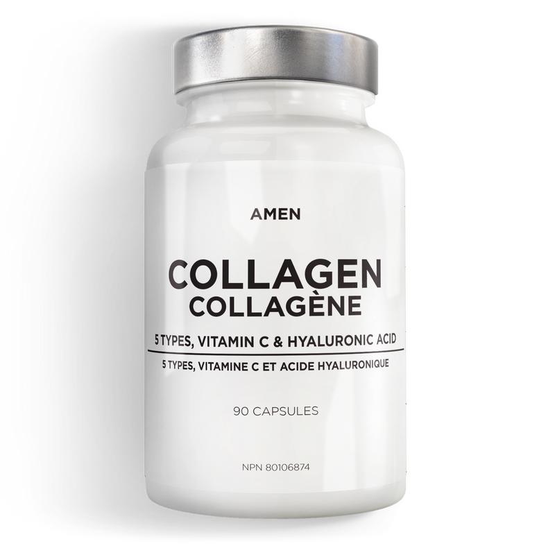 - El suplemento de cápsulas de colágeno Amen ofrece 5 tipos de colágeno (Tipo I, II, III, V y X) todo en uno. El colágeno tipo 1 y 3 puede ayudar a sostener la piel, el cabello y las uñas, el colágeno tipo 2 puede ayudar a sostener las articulaciones y los cartílagos, los tipos 5 y 10 pueden desempeñar un papel para ayudar a respaldar la elasticidad y firmeza de la piel.*
