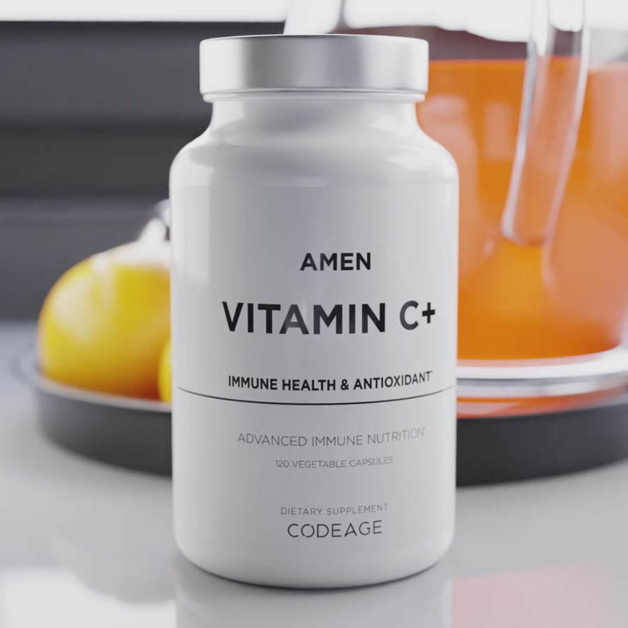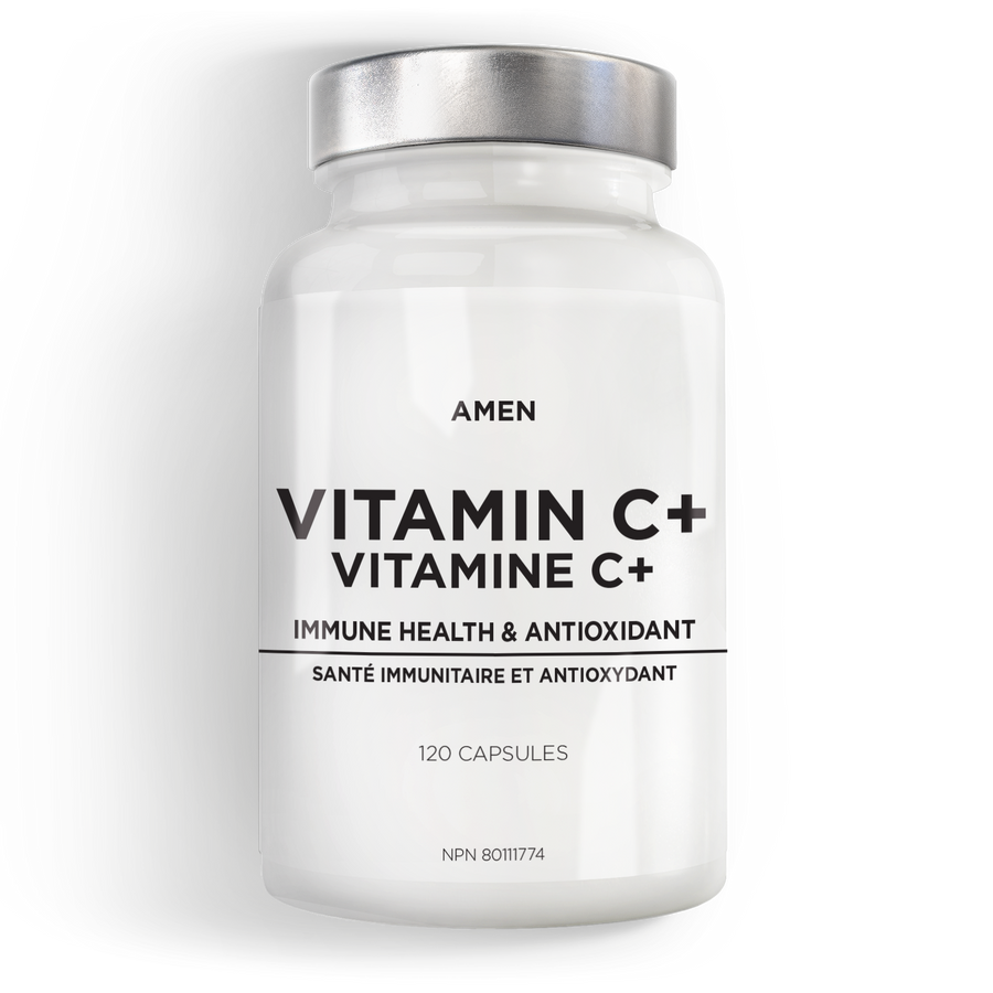 - Amen Vitamina C+ es un suplemento de vitamina C moderno que combina las propiedades inmunoestimulantes de la vitamina C, el zinc y los bioflavonoides cítricos en un suplemento vitamínico diario. Esta sinergia tiene como objetivo promover la inmunidad, la salud de la piel y brindar apoyo antioxidante para un bienestar próspero.*