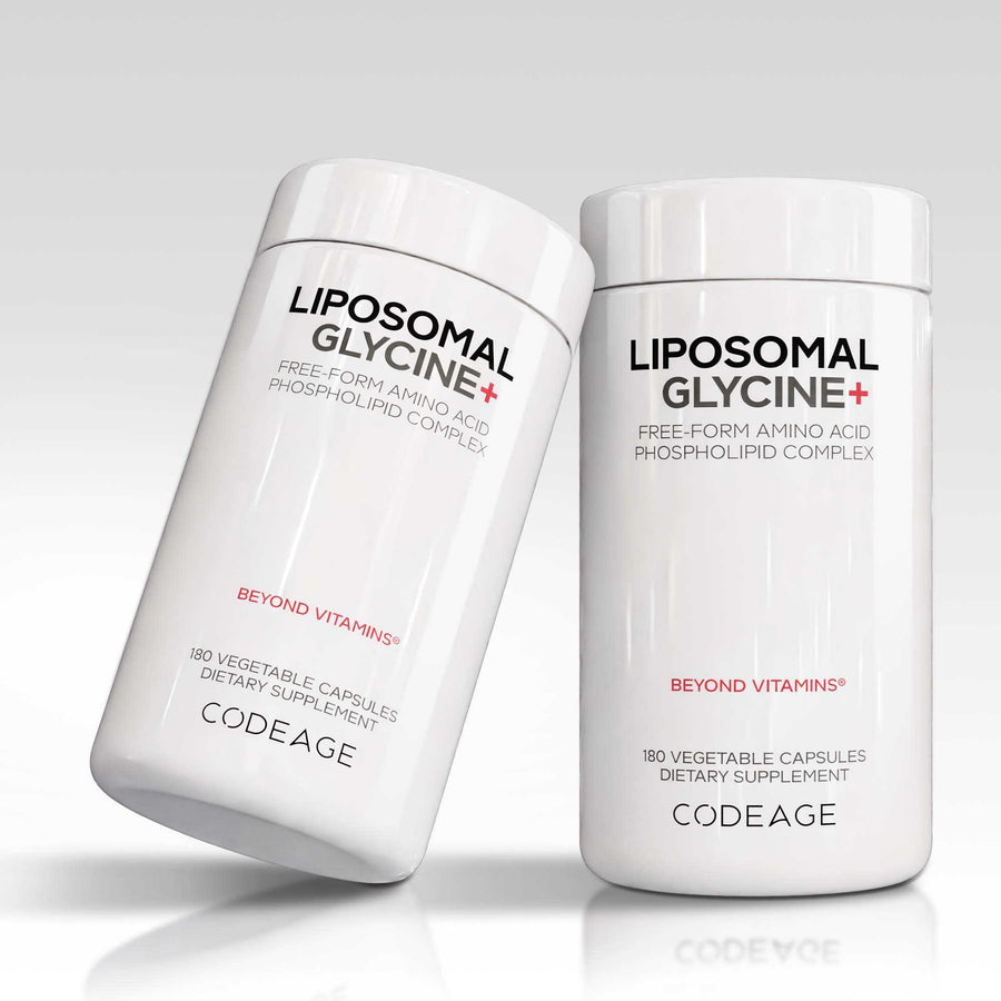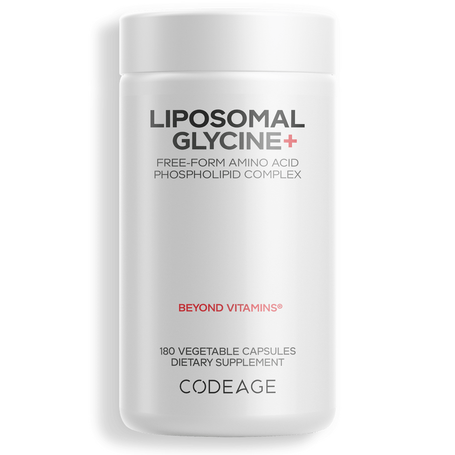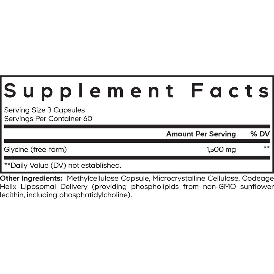 - Codeage Liposomal Glycine+ proporciona 1500 mg de glicina en forma libre por porción, lo que lo convierte en un complemento versátil para su rutina diaria.
