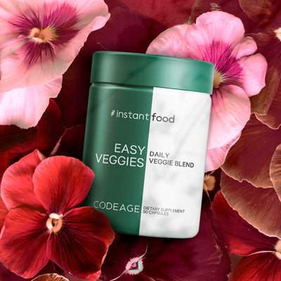 Instantfood Verduras Fáciles combina más de 15 polvos vegetales en cápsulas diarias, lo que ofrece una fuente diversa de vitaminas, fibras y minerales. Este suplemento vegetal combina polvos de alimentos integrales de verduras de hojas verdes, verduras de color verde oscuro y verduras con y sin almidón, todo en uno.