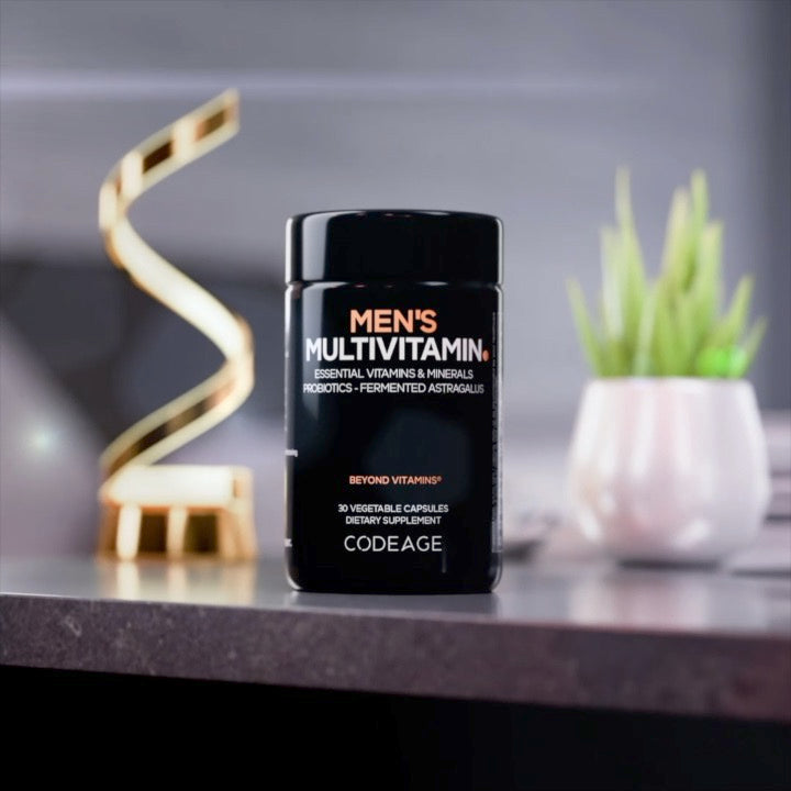 - El suplemento multivitamínico Codeage para hombres se fabrica en EE. UU. con ingredientes globales en una instalación con certificación cGMP por su calidad y pureza.