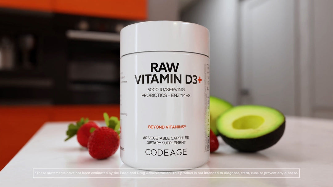 Vitamine D3 crue, probiotiques, enzymes, fruits et légumes entiers