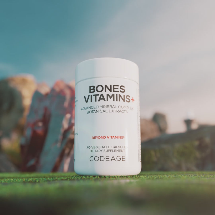 - Le supplément Codeage Vitamines pour les Os combine la vitamine D3, K2, le calcium, le magnésium, le zinc, le manganèse, le bore et le cuivre dans une formule nutritionnelle robuste.