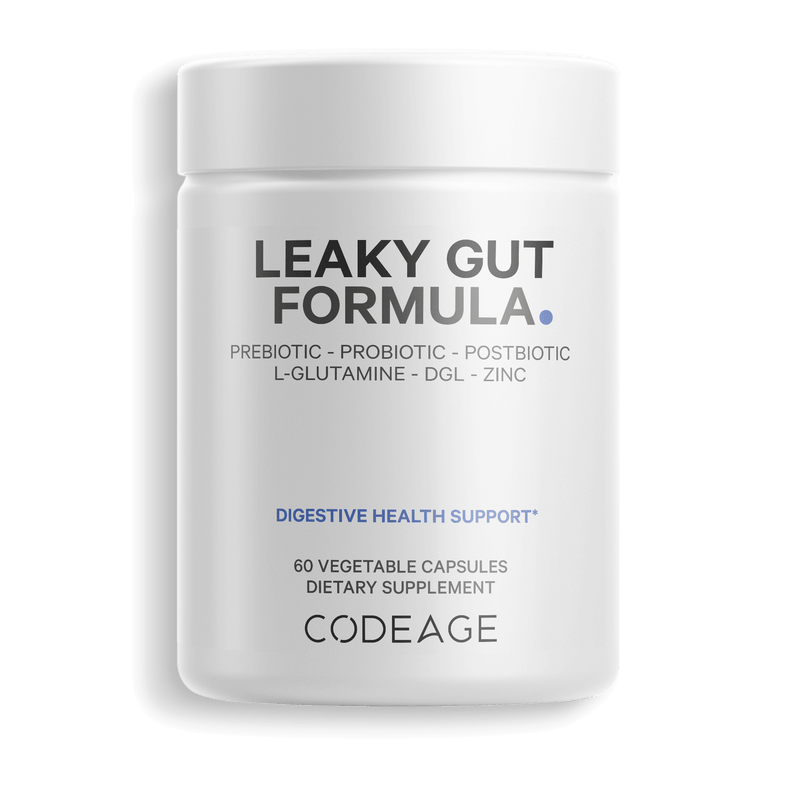 Codeage Leaky Gut Formula est un supplément méticuleusement conçu contenant un mélange d'ingrédients puissants comme la L-glutamine, la berbérine HCL, l'acide butyrique et un spectre de probiotiques, de prébiotiques et de postbiotiques.