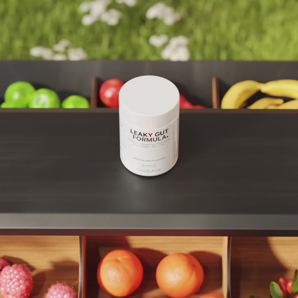- Codeage supplément Pour L'intestin Qui Fuit contient un mélange d'ingrédients, notamment de la L-glutamine, la vitamine D du cholécalciférol, Zinc, L-carnosine, N-acétylglucosamine, acide butyrique, berbérine HCL et des polyphénols organiques.