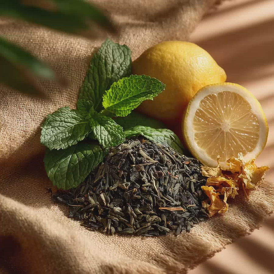 - Ce supplément de thé vert sous forme de capsule comprend du thé vert matcha biologique, des feuilles de menthe poivrée et du zeste de citron pour créer un mélange botanique vibrant.