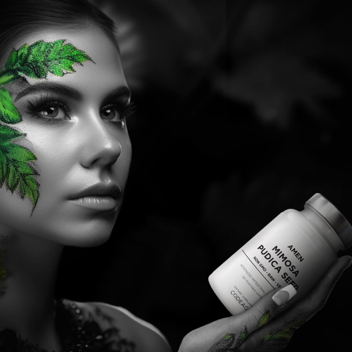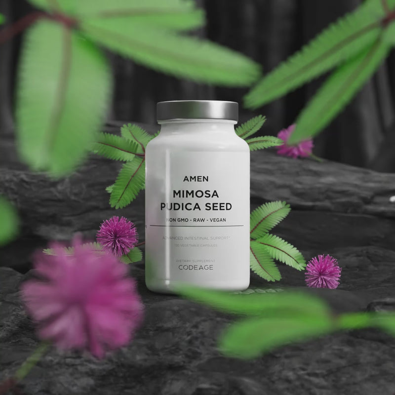 Amen Mimosa Pudica features organic mimosa pudica seeds, offering a plant-based supplement designed for daily use. These seeds are carefully selected to form the foundation of this comprehensive formula.