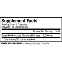Grass-Fed Pancreas (Bovine) (BSE-free). Other Ingredients: Methylcellulose Capsule.